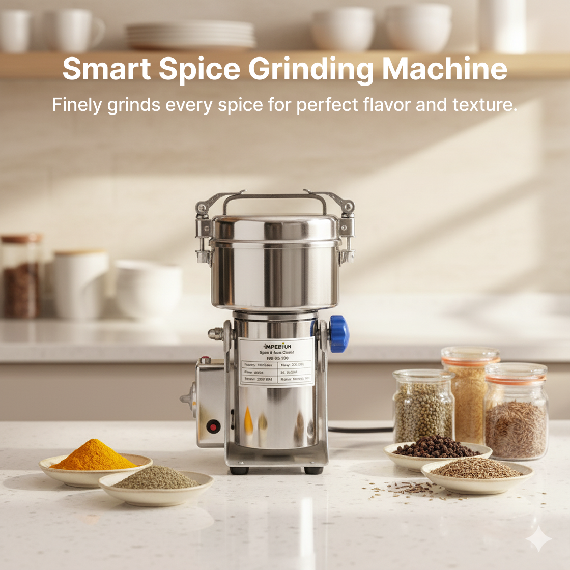 (3)Multi-functional grinders made of food grade stainless steel to grind from any spice to any grain in to fine powder at 50-300 mesh.